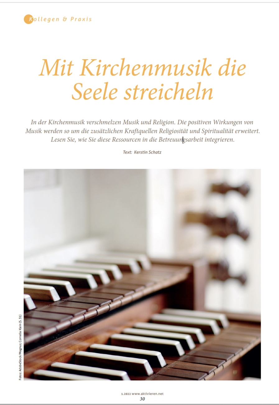 Die Bibel und das Gesangbuch bieten uns Christen einen großen Schatz an Hilfestellungen an, die wir selbst und gemeinsam mit anderen nutzen dürfen: vertraute Psalmen, biblische Geschichten, Gebete und Lieder. Besonders hilfreich erweisen sich im Krankheitsverlauf die gesungenen Bibel- und Liedverse, da auch bei nachlassenden kognitiven Fähigkeiten das Erinnern an Musik meist bis zuletzt möglich ist.